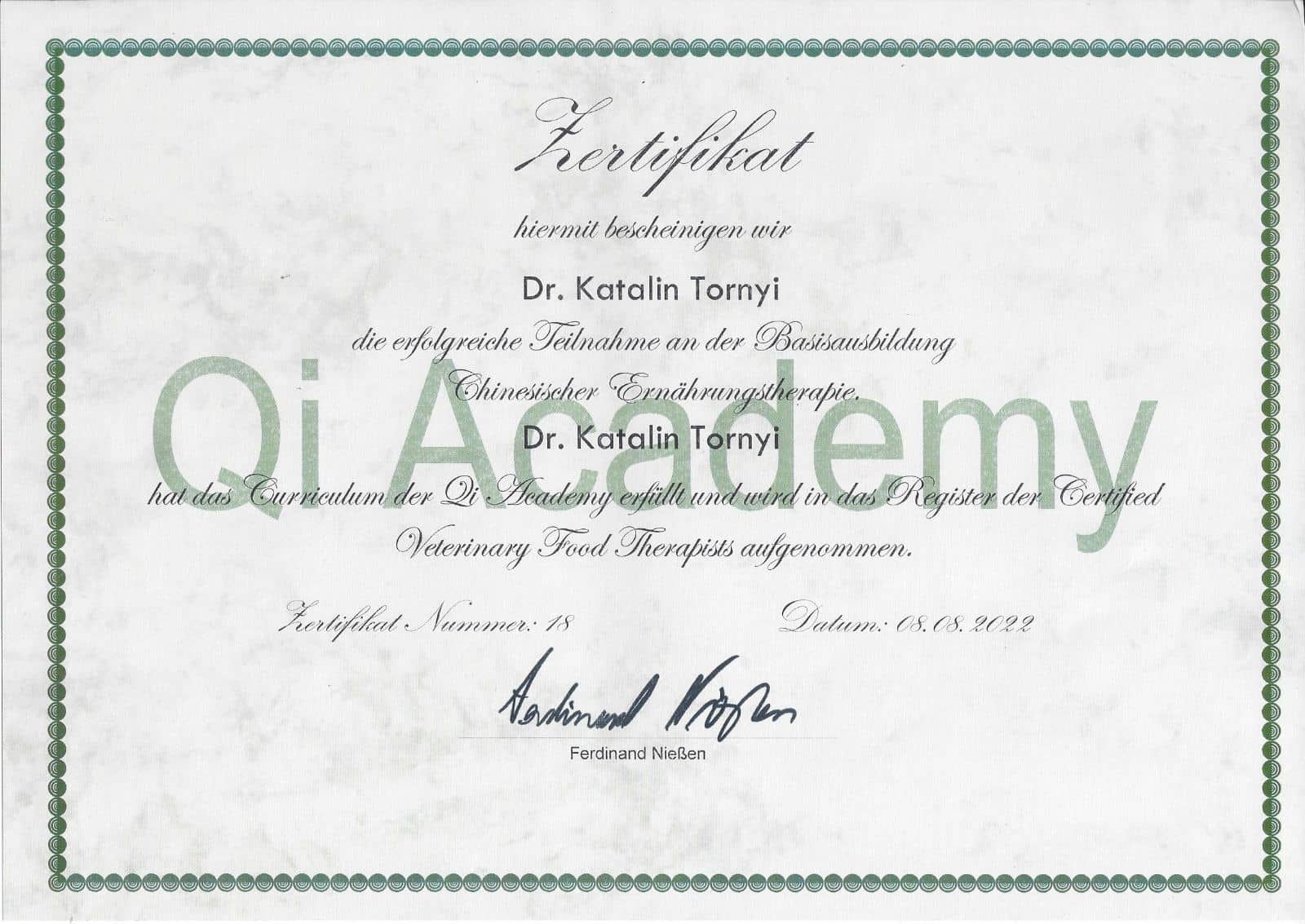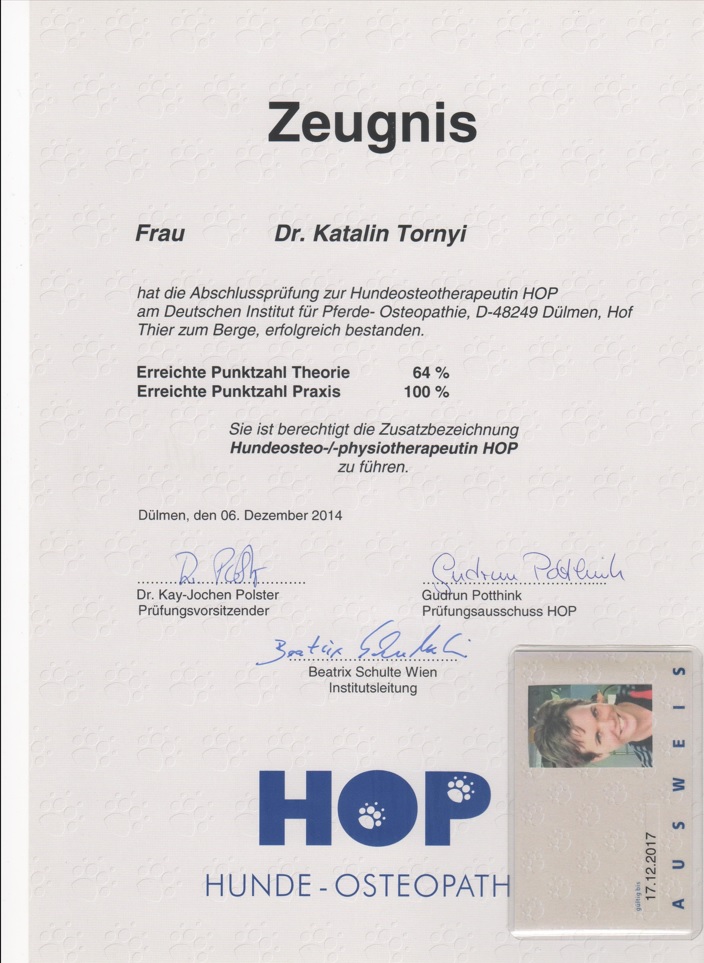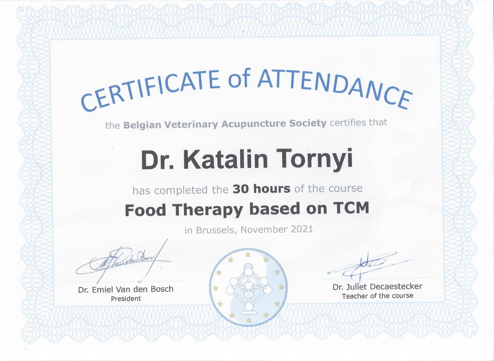 A fejlődés folyamata azonban nem állt meg. Az elmúlt 1,5 évben 2 különböző szervezet (BEVAS és Qi Academy) által szervezett, (az előre meghatározott feltételeket sikeresen teljesítők számára) certifikációt adó HKO állatorvosi dietetika képzést is sikeresen elvégeztem. Így a bizonyítványaim száma ismét nőtt.